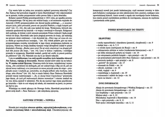 ✔ Wydanie Latarnika kompletne bez skrótów i cięć w treści. W tym wydaniu znajdziesz odpowiedzi na pytania z podręcznika - "pewniak na teście", czyli wskazanie zagadnień, które zwykle pojawiają się w pytaniach z danej lektury we wszelkich testach sprawdzających wiedzę, a także w podręcznikach i na klasówkach. Książka zawiera pełen tekst lektury. Na końcu książki zamieszczono opracowanie, w którym znajduje się bardzo szczegółowe streszczenie oraz drugie skrócone, ułatwiające szybkie przygotowanie się przed lekcją. Opracowanie zawiera ponadto plan wydarzeń, wnikliwie wyjaśnioną problematykę oraz szerokie charakterystyki bohaterów.