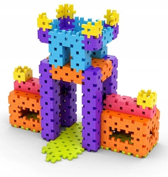 Kolorowe klocki niczym puzzle łatwo się łączą i dają możliwość składania kolejnych modeli – od zwierzątek i postaci po pojazdy i bardziej skomplikowane konstrukcje.
