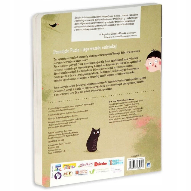 Pucio uczy się mówić. Zabawy dźwiękonaśladowcze dla najmłodszych to czwarta po Wierszykach ćwiczących języki, Z muchą na luzie ćwiczymy buzie oraz Zeszytowym treningu mowy książka z bestsellerowej serii Uczę się: mówić, wymawiać, opowiadać.