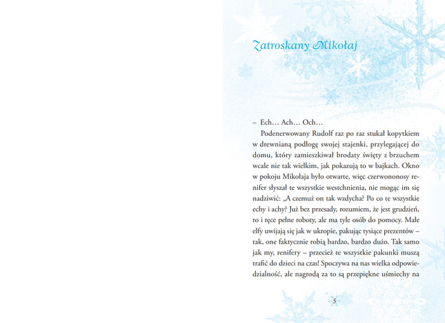 Gościł już u Bartka i jego mamy czarodziejki, którzy wypełniają szczęściem wigilijny stół ubogich. Wkradł się w tajemny świat Fifiego i samotnego pana Kazika, ukazując moc kakao i szydełka babuni. Odwiedził nawet zatroskanego Mikołaja spełniającego marzenia, których nie da się kupić. A teraz… Czy słyszysz to ciche pukanie?