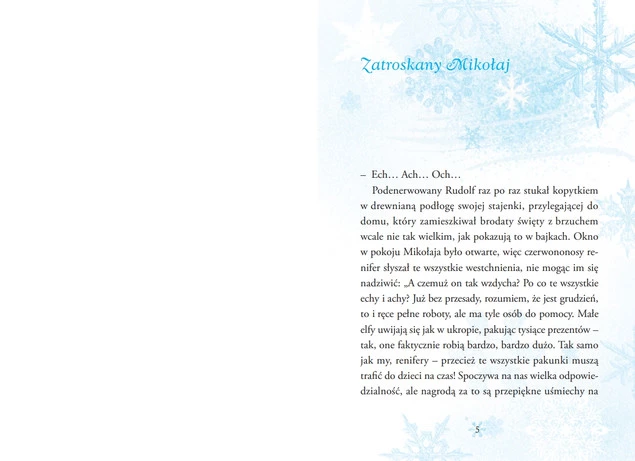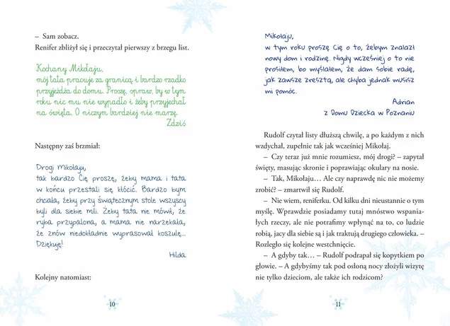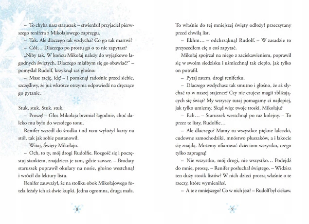 Gościł już u Bartka i jego mamy czarodziejki, którzy wypełniają szczęściem wigilijny stół ubogich. Wkradł się w tajemny świat Fifiego i samotnego pana Kazika, ukazując moc kakao i szydełka babuni. Odwiedził nawet zatroskanego Mikołaja spełniającego marzenia, których nie da się kupić. A teraz… Czy słyszysz to ciche pukanie?
