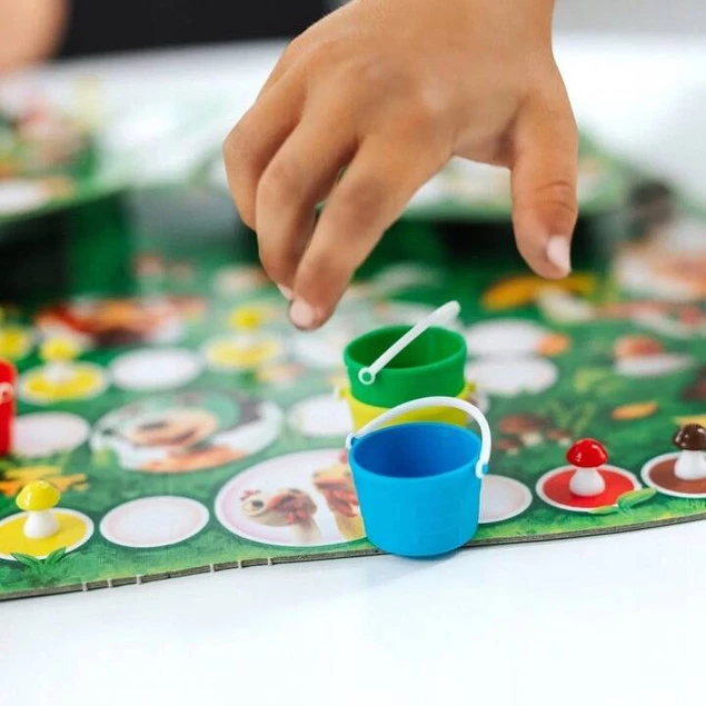 Ta niezwykle barwna gra planszowa zachwyci każde dziecko. Polega ona na wyścigu po grzybki. Plansza przedstawia wielki, kolorowy las, w którym rośnie niewiele grzybków. W lesie znajdują się góry, pagórki i kręte ścieżki, a pełen jest on dzikich zwierząt. To dziecko, które jako pierwsze zbierze największą ilość grzybków, wygrywa.