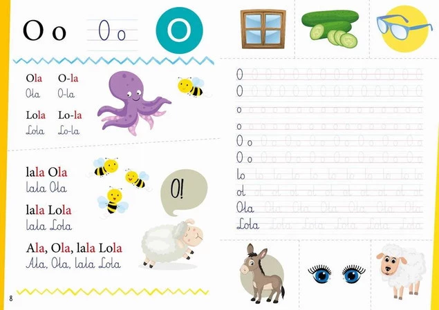Dodatkowo każdy tekst drukowany został zapisany również literami pisanymi, by pokazać dziecku różnicę w zapisie i oswoić je z pismem zeszytowym. Przy każdej literze zamieściliśmy też liniaturę, w której dziecko może poćwiczyć pisanie danej litery oraz wyrazów ją zawierających. Mój elementarz – nauka czytania, nauka pisania składa się z kilku działów.