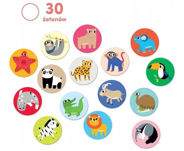Następnie sprawdźcie swoją wiedzę! Czy rozpoznajecie wszystkie zwierzaki? Dowiedzcie się o nich więcej. Możecie wykorzystać kółeczka do własnych zabaw, na przykład jako żetony do gry w kółko i krzyżyk. Memorki sprawdzą się w domu i poza nim – kompaktowe pudełko zmieści się w torebce albo dziecięcym plecaku.