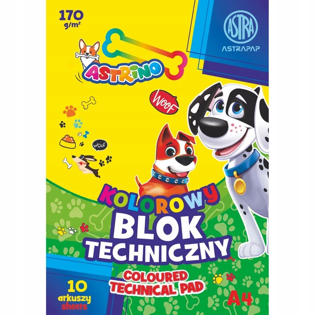Blok techniczny KOLOROWY Dla Dzieci Szkoła Plastyka A4/10k 170g Astra