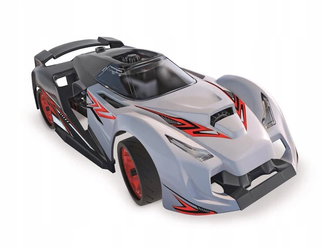 W opakowaniu znajduje się również kolorowy zestaw naklejek do ozdobienia wyścigówki. Sprawnym układem kierowania można sterować z góry i przeżywać fantastyczne przygody.