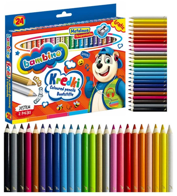Bambino kredki okrągłe ołówkowe grube Jumbo 24 kolory + temperówka (1 szt.)