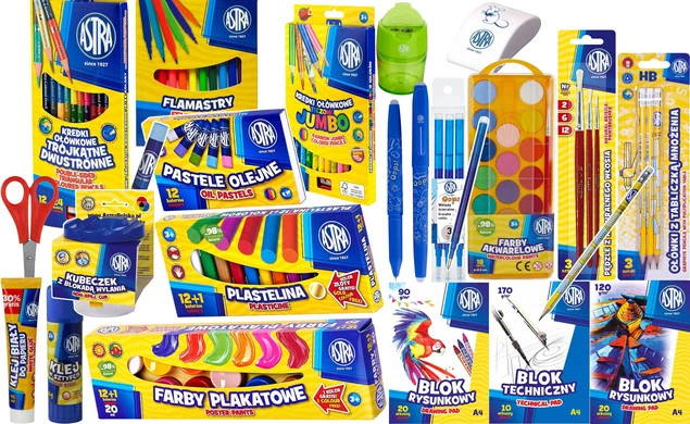 ✨ Bardzo duży, kompletny zestaw podstawowych artykułów plastycznych opierający się na produktach Astry. ✨