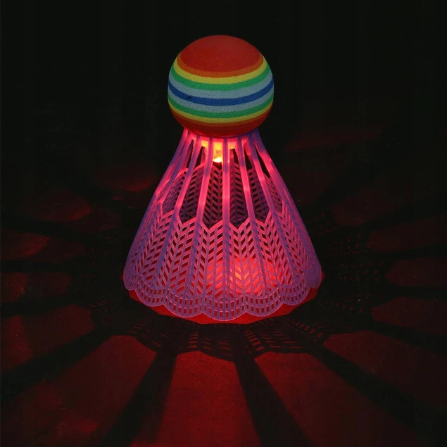 Baza jest kolorowa, przez co lepiej widoczna. Dodatkowo lotka posiada lampkę LED. Lampkę uruchamia się włącznikiem, znajdującym się wewnątrz koszyczka, na bazie. Dzięki temu, gra jest możliwa nawet w nocy.
