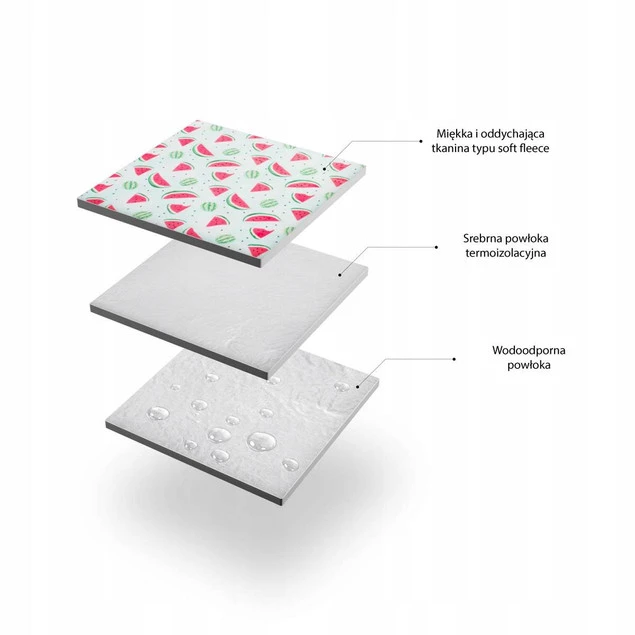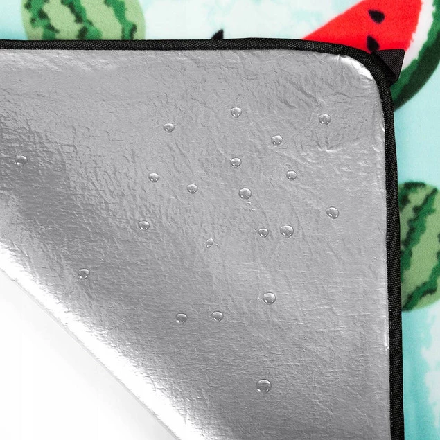 To koc, o tak dużej powierzchni (220x200), że bez najmniejszego problemu, pomieści całą rodzinę. Takie rozwiązanie, jest dużo bardziej efektywne niż dwa mniejsze koce. Nie ma ryzyka, że koce się rozsuną, a któraś z naszych rzeczy, spadnie na trawę lub co gorsza na piasek. Jego niewątpliwym plusem, od razu rzucającym się w oczy jest design. Świetnie dobrane kolory, oraz grafika w bardzo modne arbuzy sprawia, że koc jest nie tylko wygodny i funkcjonalny, ale także cieszy oko.