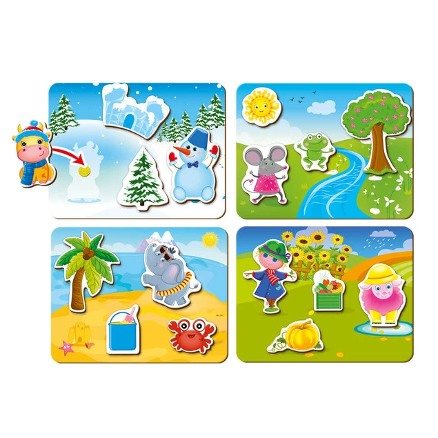 Gra nie tylko będzie pomocna w nauce pór roku, ale będzie także doskonałym ćwiczeniem na logikę i drobną motorykę mięśniową.