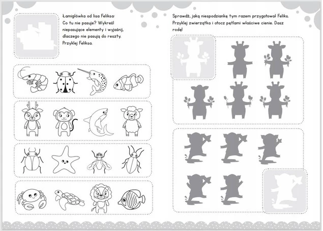 Spójrz na rozbrykane zwierzątka i dołącz do zabaw, które dla ciebie przygotowały. Łącz pasujące elementy, posługuj się symbolami, twórz ciągi logiczne, a nawet sudoku obrazkowe!