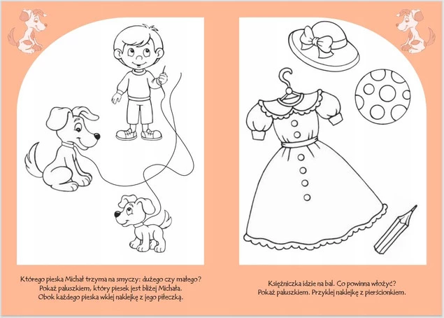 Możliwość kolorowania, uzupełniania i wklejania naklejek daje dodatkową satysfakcję i radość z samodzielnego wykonania ćwiczeń.