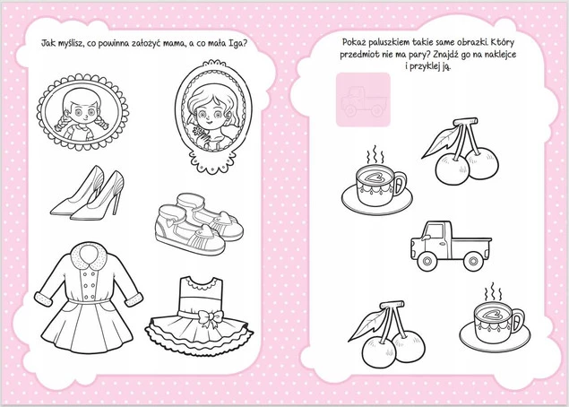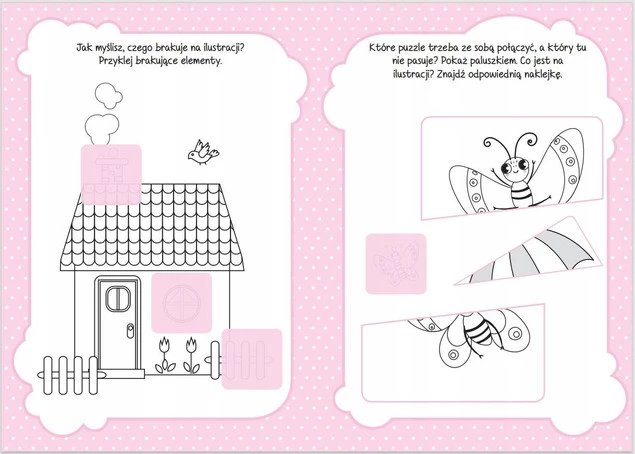 Czego potrzebuje Ola, by namalować obrazek? Jakie autko zaparkowało przed małym domkiem? Gdzie ukryły się klocki Asi?
