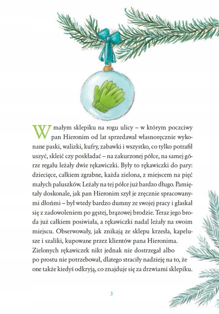 Oto mały Jaś gości w sklepie pana Hieronima, a spotkanie to wnosi radość w ich życie i w życie wełnianych sióstr. Ile rączek i serc ogrzeją zielone rękawiczki? I czy nowi przyjaciele odkryją, jak to cudownie lepić bałwany i głaskać zajączki?