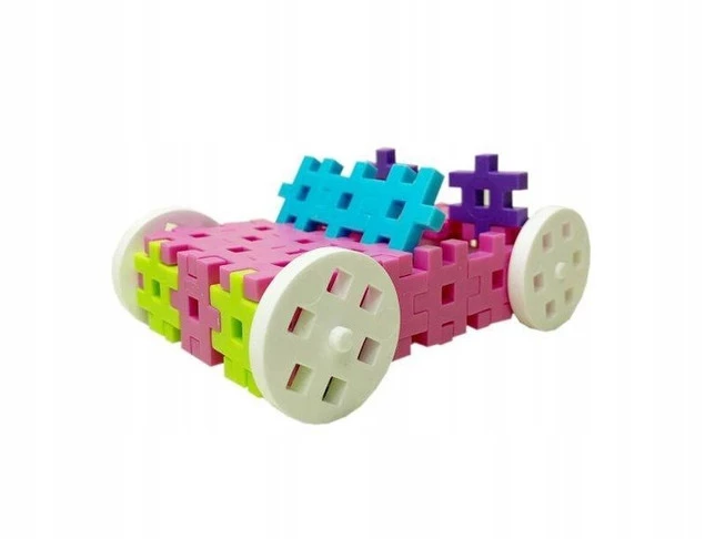Klocki Meli Constructor Pink 400 elementów to kreatywny zestaw konstrukcyjny przeznaczony dla dziewczynek od 4 lat. Zawiera 400 elementów w pastelowych kolorach z przewagą różu, fioletu i zieleni, które umożliwiają budowanie różnorodnych modeli – od kwiatków, drzewek, samochodzików po kucyki i postacie z bajek. Zestaw wzbogacono o nowe elementy, takie jak koła, łączniki i sześciokąty, które poszerzają możliwości kreatywnej zabawy i konstrukcji.