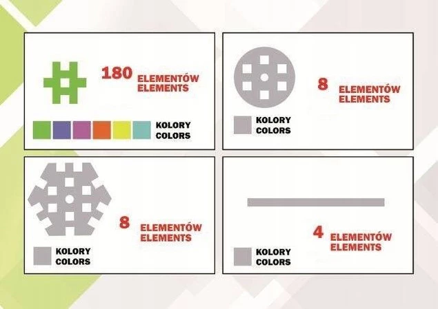 Rozwijają one u dziecka wyobraźnię przestrzenną oraz dostarczają radości na długie godziny! Wyjątkowo dobrany zestaw kolorów zadowoli gusta każdego malucha.