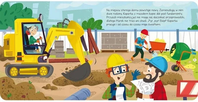 Dlatego książeczka o pracowitym dniu dzielnej koparki i jej operatora Marka zainteresuje małych czytelników.