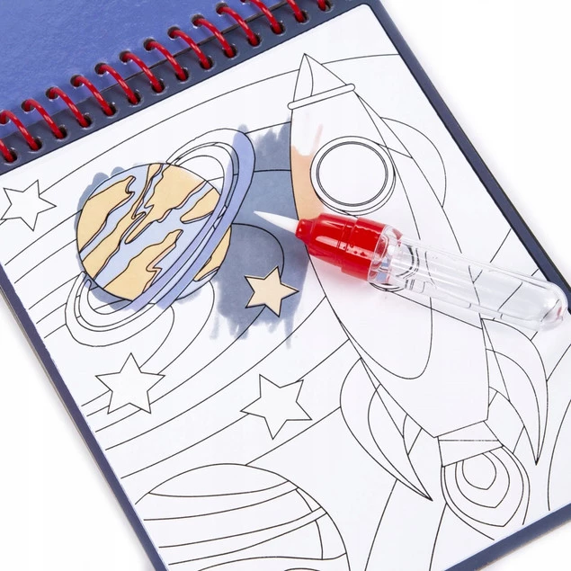 Magiczna wielorazowa kolorowanka wodna to super pomysł na prezent! Posiada aż 6 obrazków idealnych dla wszystkich miłośników kosmosu. W zestawie znajduje się pisak na wodę.