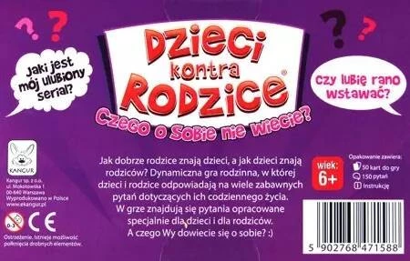 Dzieci Kontra Rodzice Czego O Sobie Nie Wiecie? Gra Rodzinna 6+ Kangur
