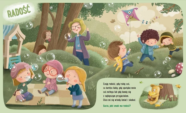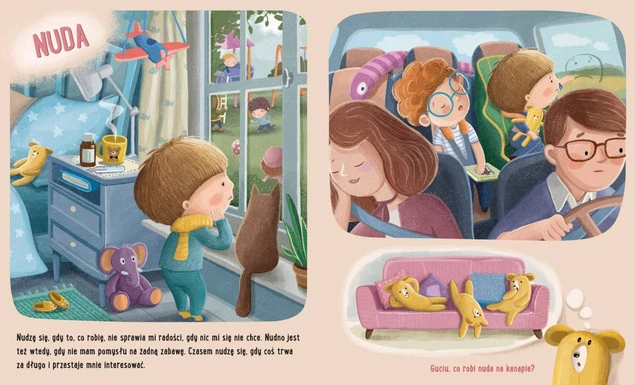 Podczas lektury książki mały czytelnik znajdzie się w wielu dobrze znanych sobie sytuacjach. Razem z Felusiem i Guciem nauczy się rozpoznawać, nazywać i akceptować swoje emocje. Będzie też wiedział, skąd się biorą, w jaki sposób można je wyrażać i jak sobie z nimi radzić.