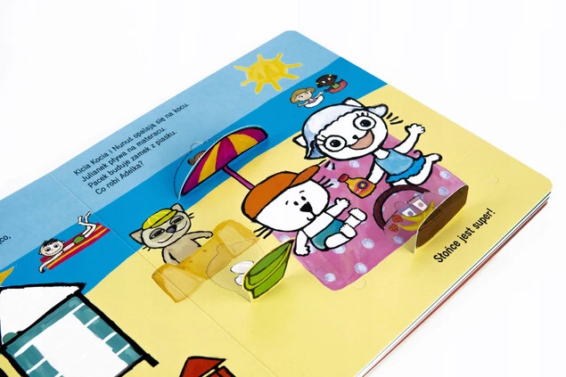 Maluchy uwielbiają sekrety i zagadki, nie ma zatem lepszego konceptu na książkę dla dzieci niż książka z okienkami, gdzie odkrywać można mnóstwo tajemnic. W tomie  „Kicia Kocia i Nunuś. W co się ubierzemy?” zakamuflowanych zostało aż 59 okienek kryjących najróżniejsze niespodzianki!