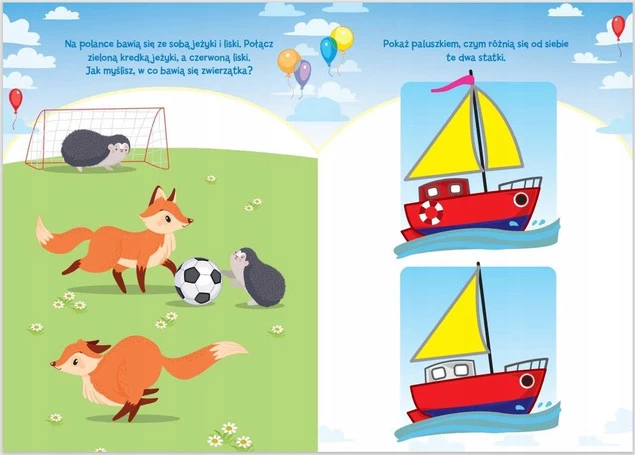 Rozrywkowy zeszycik zachęci do zabawy i ćwiczeń wspomagających rozwój każdego malucha. Dostosowane do wieku dziecka zadania pozwolą mu rozwijać spostrzegawczość, umiejętność kojarzenia oraz orientację w przestrzeni. Łączenie elementów i rysowanie po śladzie pomogą doskonalić sprawność manualną. Ciekawe ilustracje przyciągną uwagę, by uwrażliwić na szczegóły, kształty i wielkości.
