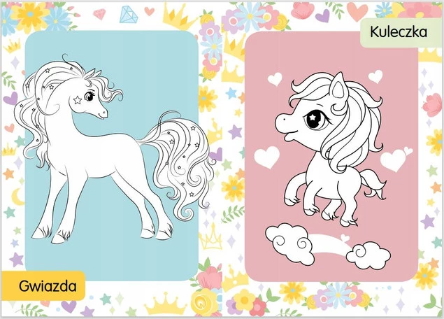 MALOWANKI KOLOROWANKI Z NAKLEJKAMI - SKRZAT:MALOWANKI KOLOROWANKI Z NAKLEJKAMI KOLOROWANKA Z TAUAŻAMI KUCYKI
