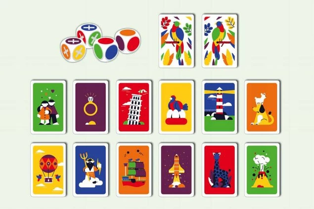 Doskonała zabawa dla 2-7 osób. Jeden z graczy rzuca 2 kostkami i wszyscy jak najszybciej wykładają swoje karty. Wykładane karty muszą spełniać warunki wskazane przez kostki. Wygra osoba, która najszybciej wyłoży wszystkie swoje karty. Pełna emocji gra na spostrzegawczość dla dzieci i dorosłych!