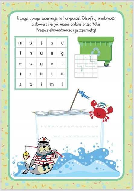 Niezbędnik każdego ekobohatera! W walce o dobro planety nie jesteś sam – u twojego boku stają ekozwierzaki. Zebrane przez nie ekozasady i ekozabawy uwrażliwiają na delikatność przyrody, przestrzegają przed nieodwracalnością zmian i pokazują, jak dbać o środowisko w myśl zasady: odpowiednio wrzucaj – byle gdzie nie wyrzucaj!
