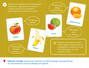 W edukacyjnej książeczce znajdziecie 32 smakowite ilustracje przedstawiające kolorowe warzywa i owoce, które mogą znaleźć się na waszym stole. Karty mają poręczny format i oryginalne łączenie, dzięki czemu możecie korzystać z nich na wiele sposobów i w różnych miejscach. Wspólna zabawa rozwija zmysły i doskonali spostrzegawczość, pamięć i kreatywność.