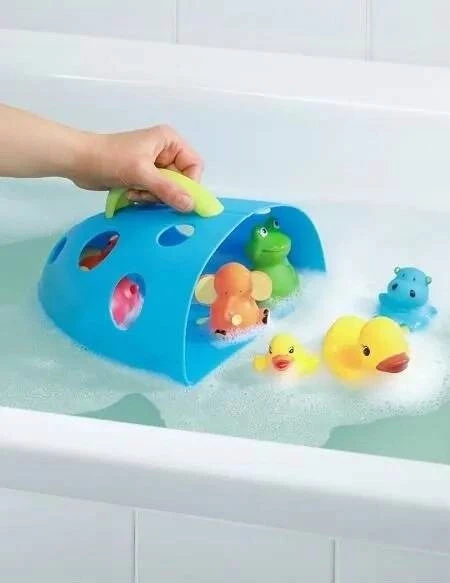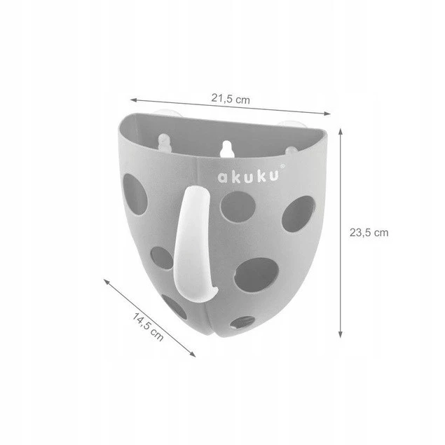Pojemnik na zabawki kąpielowe to bardzo praktyczne i wielofunkcyjne rozwiązanie. Dla dziecka posłuży jako świetna zabawka. Wystarczy nabrać wody do pojemnika, aby zaczęła się przelewać przez otwory. Dla rodzica będzie pomocne w utrzymaniu porządku w łazience. Pojemnik montuje się na ścianie za pomocą przyssawki, a w środku można umieścić wszystkie zabawki kąpielowe malucha. Otwory umożliwiają odpływ wody, zabawki bez problemu mogą wyschnąć i czekać na następną kąpiel.