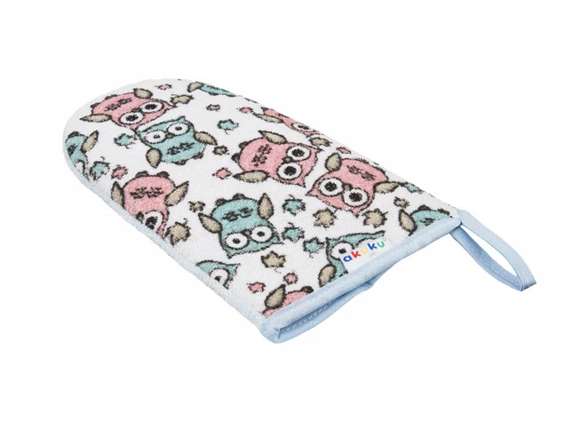 Akuku RĘKAWICA Myjka Kąpielowa FROTTE Podpiankowa SOWY Pastelowe A1144