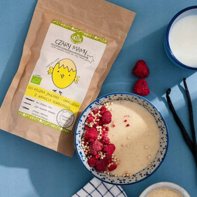 Kraj pochodzenia: ekologiczna kaszka jaglana - Ukraina; ekologiczna kasza manna orkiszowa - Polska; ekologiczna wanilia burbońska - Madagaskar.