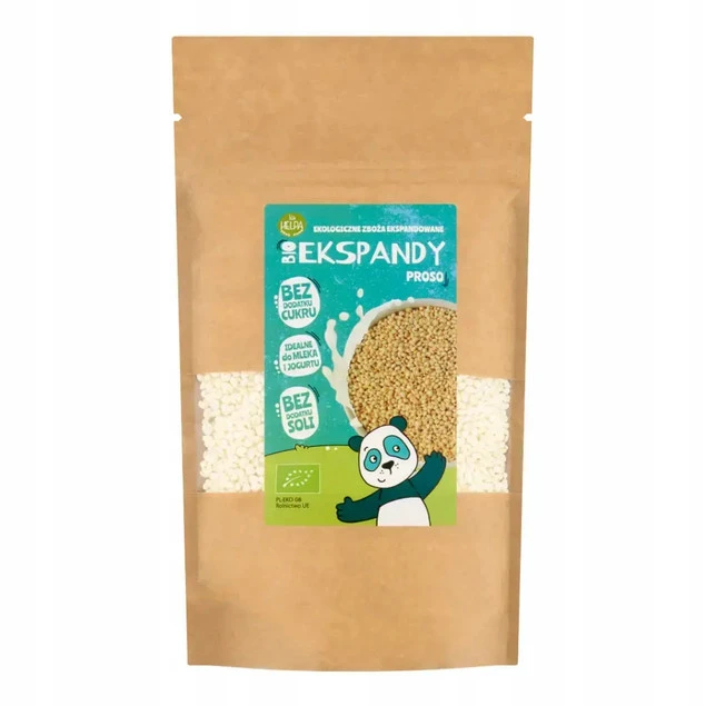 - Składniki: ekologiczne proso ekspandowane 100 %.