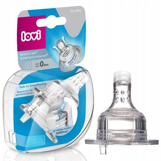 Dynamiczny smoczek LOVI do podawania odciągniętego mleka mamy powstał w wyniku badań z udziałem lekarzy oraz neurologopedów. Jest zbudowany z niejednorodnych warstw silikonu.