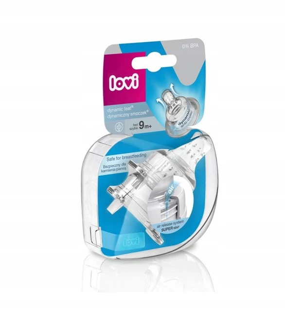 Dynamiczny smoczek LOVI do podawania odciągniętego mleka mamy to efekt pracy neurologopedów. Jest zbudowany z niejednorodnych warstw silikonu: miękkiej, cienkiej, wydłużającej się końcówki i szerokiej, twardej, profilowanej podstawy. Dzięki temu nie zaburza odruchu ssania i nie koliduje z karmieniem piersią.
