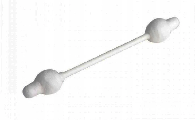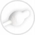 ![]() | Kształt bawełnianej części patyczka z ogranicznikiem zapewnia bezpieczne użytkowanie. |