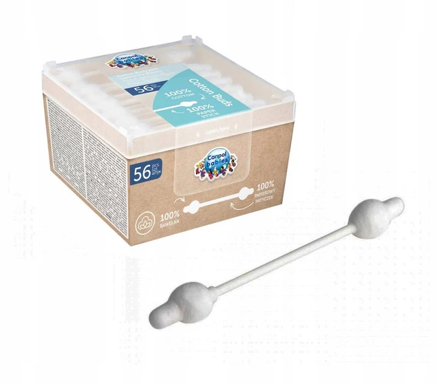 Wielofunkcyjne patyczki higieniczne zostały wykonane z delikatnej bawełny i papieru. Specjalny kształt główki z ogranicznikiem zapewnia bezpieczne użytkowanie. Papierowy patyczek jest ekologiczną alternatywą dla plastikowych patyczków. Doskonale nadają się do oczyszczania trudno dostępnych miejsc, ran i otarć. Są niezastąpione w codziennej pielęgnacji dziecka. W opakowaniu 56 sztuk.
