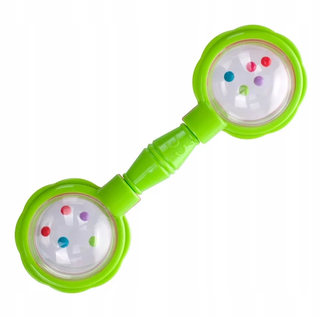 Grzechotka SZTANGA sprawdzi się jako pierwsza zabawka dla maluszka, ponieważ jest lekka i poręczna. Dziecku łatwo chwycić ją w rączkach. Zabawka posiada obrotowe elementy. Ma delikatnie zaokrąglone kształty. Przezroczyste części zabawki zawierają małe, kolorowe elementy, które poruszają się podczas zabawy i wywołują przyjemny dźwięk grzechotania. Zachęca dziecko do ćwiczeń i zabawy, stymulując jego rozwój psychomotoryczny. Przeznaczona dla dzieci w wieku 0m+.