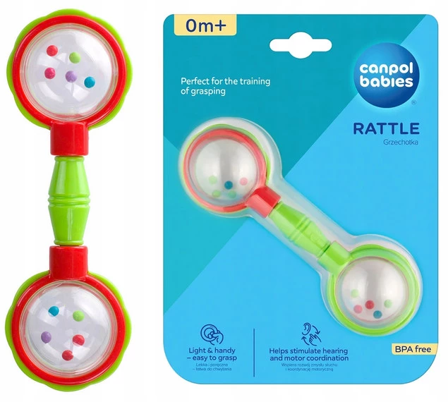 CANPOL Lekka GRZECHOTKA Sztanga Dla Niemowląt CZERWONA Zielona 0m+ 2/606