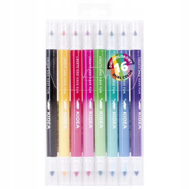 Flamastry Pisaki Dwukolorowe 16 Kolorów Kidea