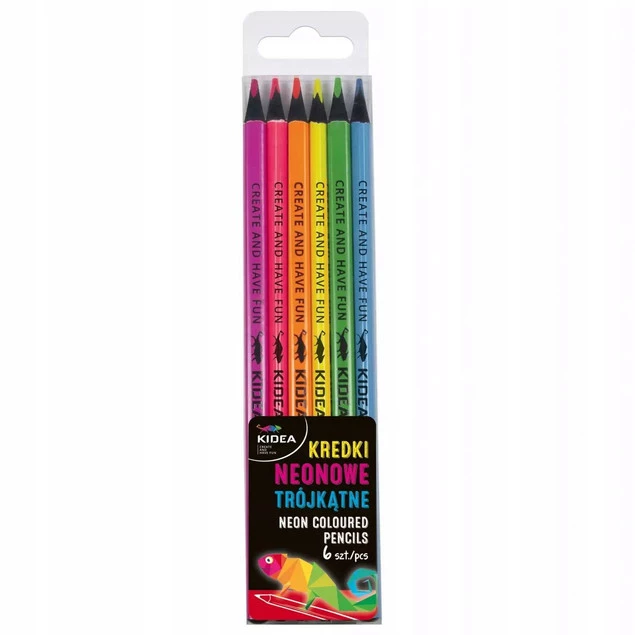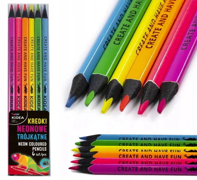 Kredki Trójkątne Szkolne Ołówkowe NEONOWE 6 Kolorów Kidea