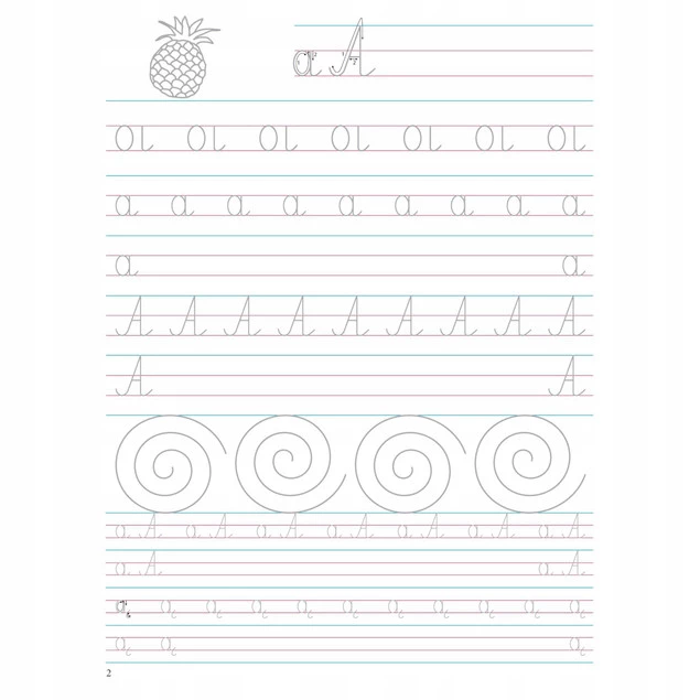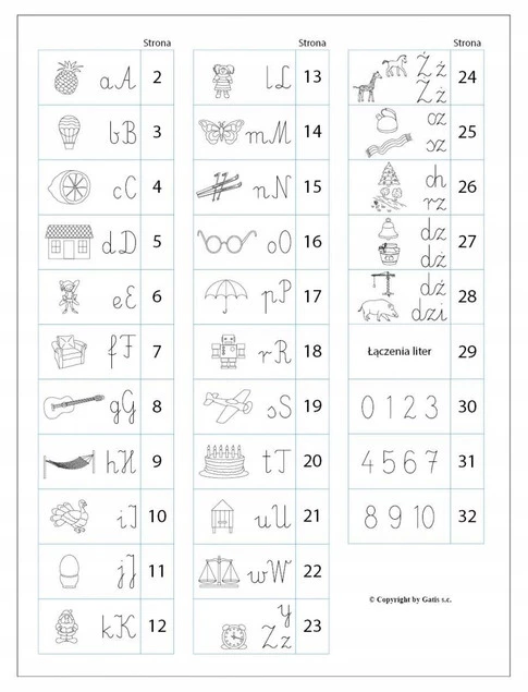 - wzory pisania liter (po lewej stronie dla osób praworęcznych, po prawej dla leworęcznych)