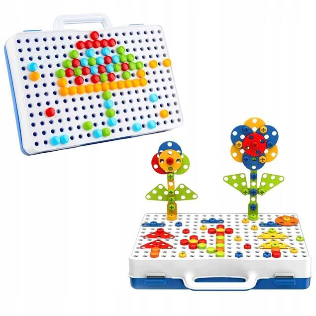 W zestawie znajdziecie aż 237 elementów do wkręcania i tworzenia niesamowitych konstrukcji. Wszystko jest schowane w wygodnej walizce, która po rozłożeniu stanowi podstawę układanki.