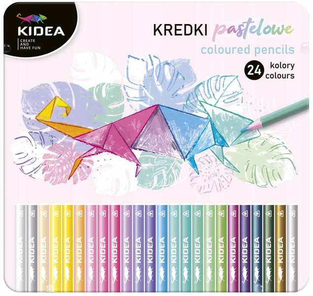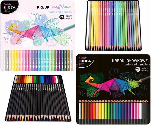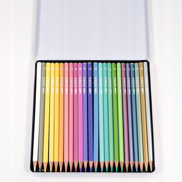 ⭐️ Kredki Ołówkowe Trójkątne W Metalowym Pudełku 24e. +Pastelowe 24e. Kidea ⭐️