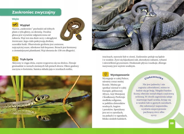 Jaki to gad. Atlas dla dzieci przedstawia ponad 60 gatunków gadów z całego świata. Przeczytasz w nim nie tylko o rodzimych padalcach i żmijach zygzakowatych, ale również o tropikalnych wężach, żółwiach i aligatorach Afryki, Ameryki czy Australii.