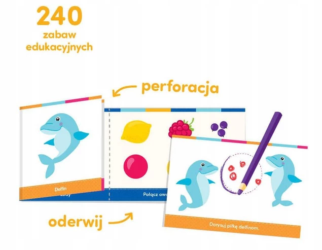 Poręczna edukacyjna książeczka dla dzieci w wieku od 2 lat zawiera 240 wciągających, edukacyjnych zabaw. Każda strona składa się z części z informacją, zagadką lub zadaniem oraz części do gryzmolenia. Dzięki perforacji możecie oderwać fragment do rysowania i cieszyć się poręczną książeczką z ciekawostkami.