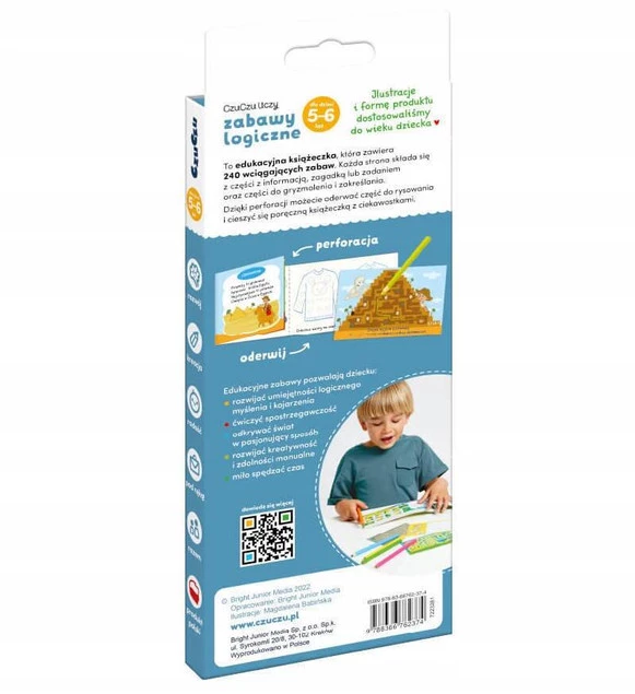 CzuCzu uczy Zabawy logiczne dla dzieci w wieku 5-6 to niewielka formatem a duża możliwościami książeczka z zabawami logicznymi. Bawcie się, doskonaląc przeróżne kompetencje: zdolności manualne, logiczne myślenie, kreatywność: