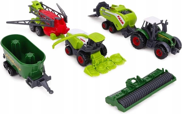 Zestaw zawiera miniatury różnego rodzaju pojazdów rolniczych idealnie odwzorowujących prawdziwe maszyny. Dziecko będzie mogło zapoznać się z różnymi modelami i samodzielnie zaplanować nimi pracę na swojej wymarzonej farmie ;)